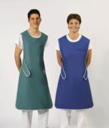 Tato zástěra poskytuje přední ochranu proti záření na operačních sálech, kde není potřeba nosit ochranu během celého průběhu operace. Jakmile už nepotřebujete protiradiační ochranu, můžete zástěru jednoduše nechat sklouznout dolů odepnutím Velcro zapínání pod pláštěm operatéra.