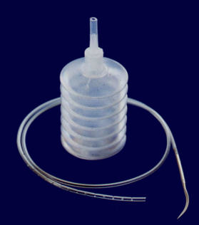 Se spojovací trubicí, závěsem a drénem, dvojité balení, sterilní.